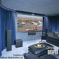 M1300 Onyx with Veltex Fixed Frame Screen - 100" diagonal NTSC Format Size: 100"?253285 Size: 100" A fixed projection screen that's really easy to install! It assemble in about 10 minutes, the aluminum frame interconnects on site with one simple hand tool that is provided. With a radical new approach to fabric attachment even the toughest critics will be amazed. Features -Each side piece slipfits tightly to injection molded plastic corners, forming perfectly mitered edges -No snaps! Uniform tension is applied to the entire surface area, so the surface is perfectly flat -Unique fabric retention system enables you to adjust the surface tension up to 1-1/2'', both vertically and horizontally in increments of approximately 3/8'' in just seconds, without tools -Frame finish: velvety black textile, Vel-Tex, to eliminate reflections -Warranted for one year against defects in materials and workmanship
