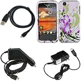 iFase Brand LG Maxx/myTouch E739 Combo Green Lily Protective Case Faceplate Cover + Home Wall Charger + Rapid Car Charger + USB Data Charge Sync Cable for LG Maxx/myTouch E739