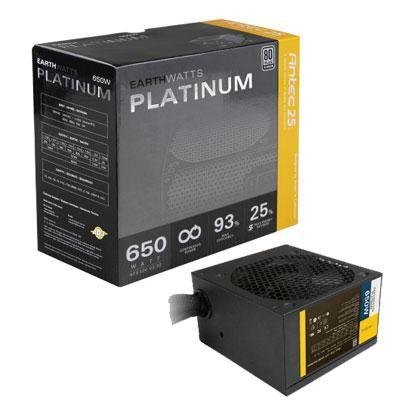 Antec Inc EA-650 Platinum 650W 80 PLUS PSU Antec's EarthWatts Platinum is one of the most efficient PSU series ever created. With an 80 PLUS PLATINUM rating, the highest efficiency mark for power supplies, this PSU achieves up to 93% efficiency and gives you savings unheard of from other power supplies. By using the EA-650 Platinum, you can reduce your electricity bill up to 25%. A 3 year Antec Quality warranty, a whisper-quiet 120mm DBB fan controlled by Antec's renowned Thermal Manager and CircuitShield with industry-leading 7 levels of protection make the EA-650 Platinum one of the best choices available. Get the power you need, save money and help protect the environment with Antec's EA-650 Platinum