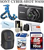 Sony Cyber-shot Digital Camera W650 + Spare Bettery + 16GB Card + Cleaning kit + Flexpod + Case + Card Reader + Memory Card Wallet + Screen Protection